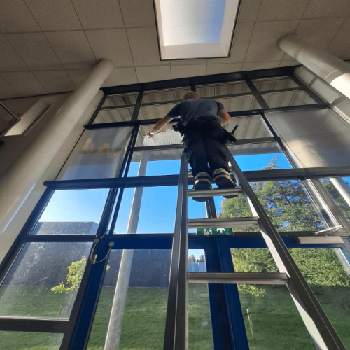 Schone ramen zorgen voor een professionele uitstraling van ieder pand. Ons schoonmaakbedrijf in de regio biedt professionele glasbewassing voor bedrijven. Met moderne technieken en veilige werkwijzen zorgen wij voor streeploos schone ramen, zowel binnen als buiten. Kies voor betrouwbare glasbewassing en geniet van helder zicht en een representatieve uitstraling van uw gebouw.
